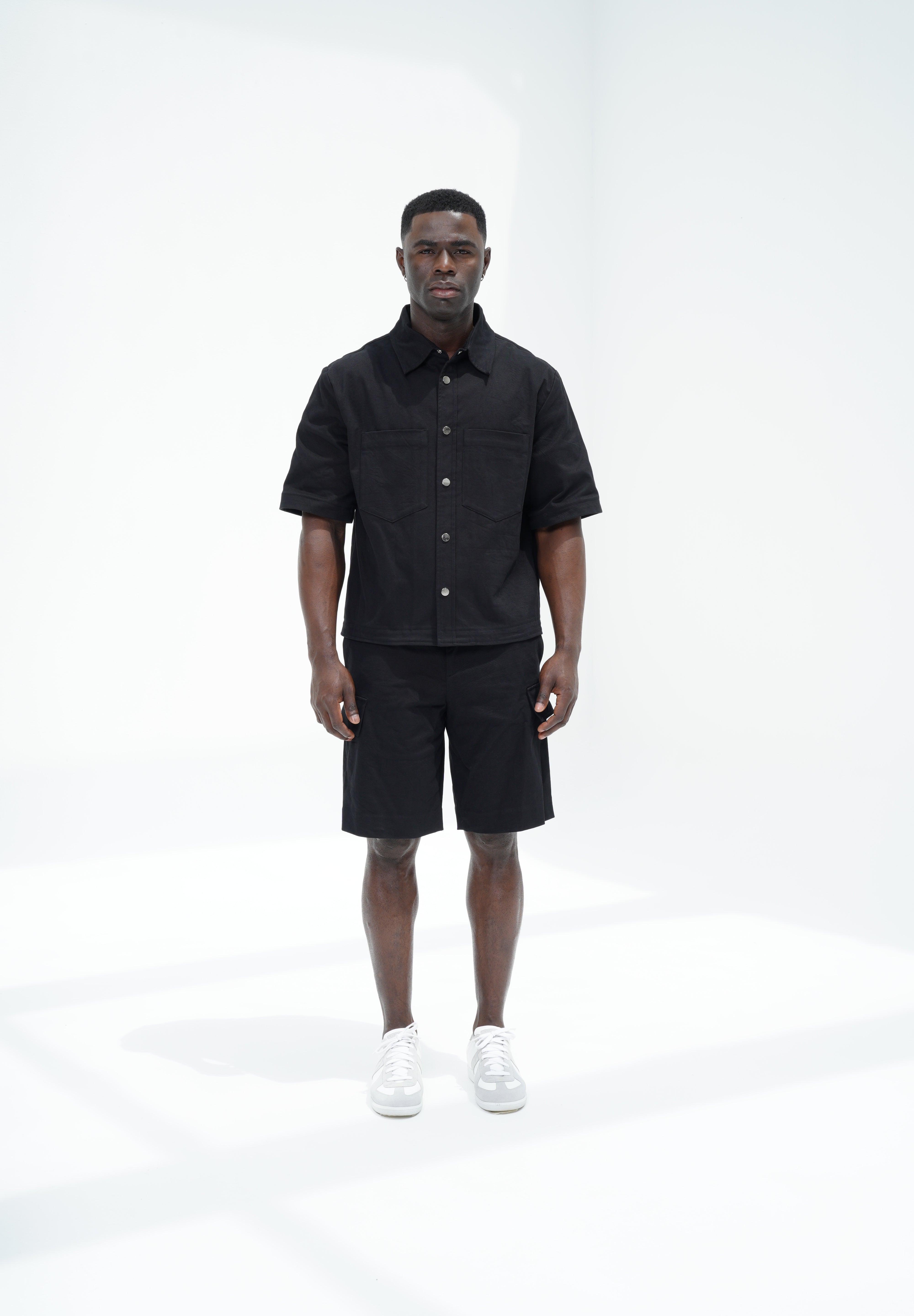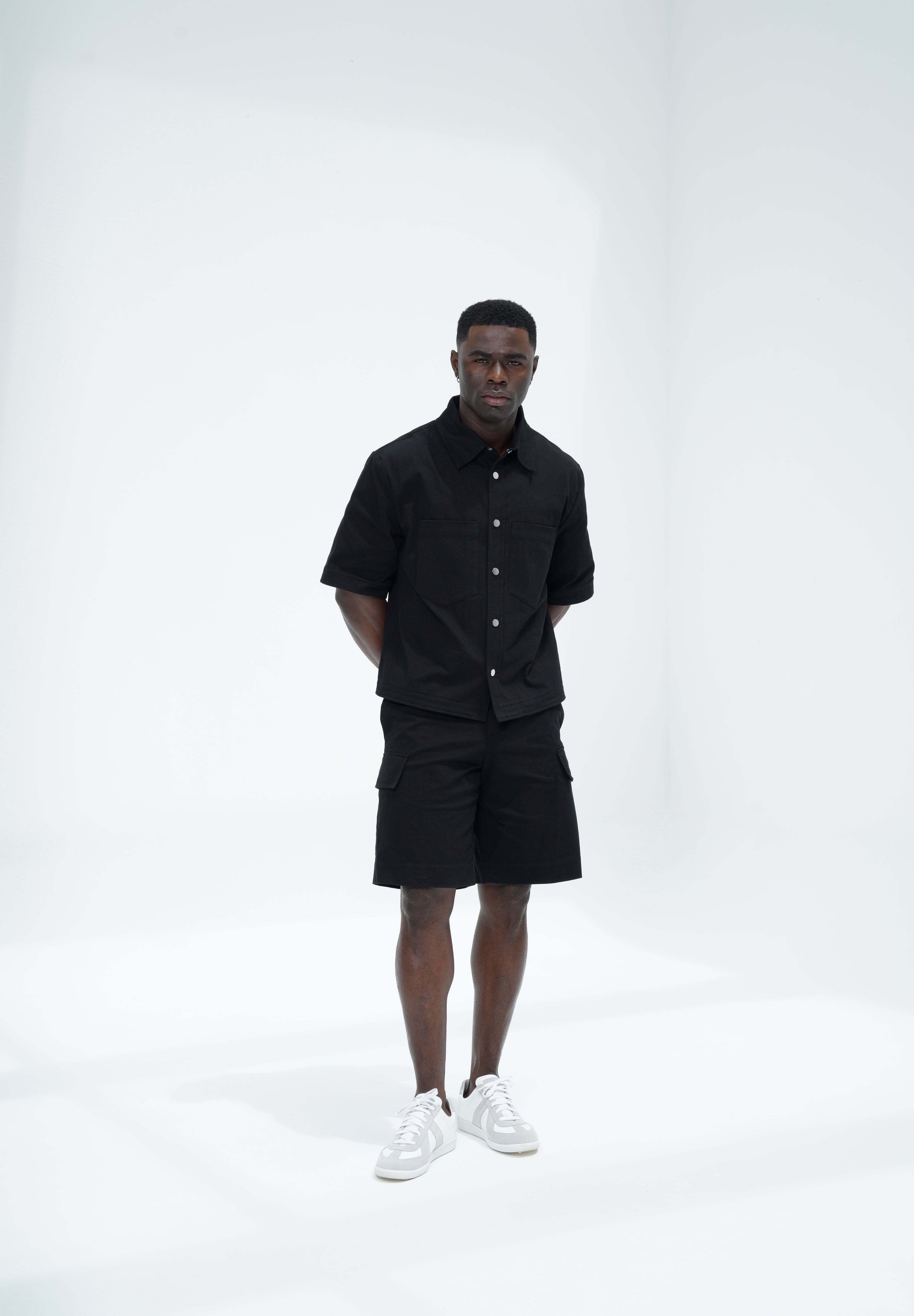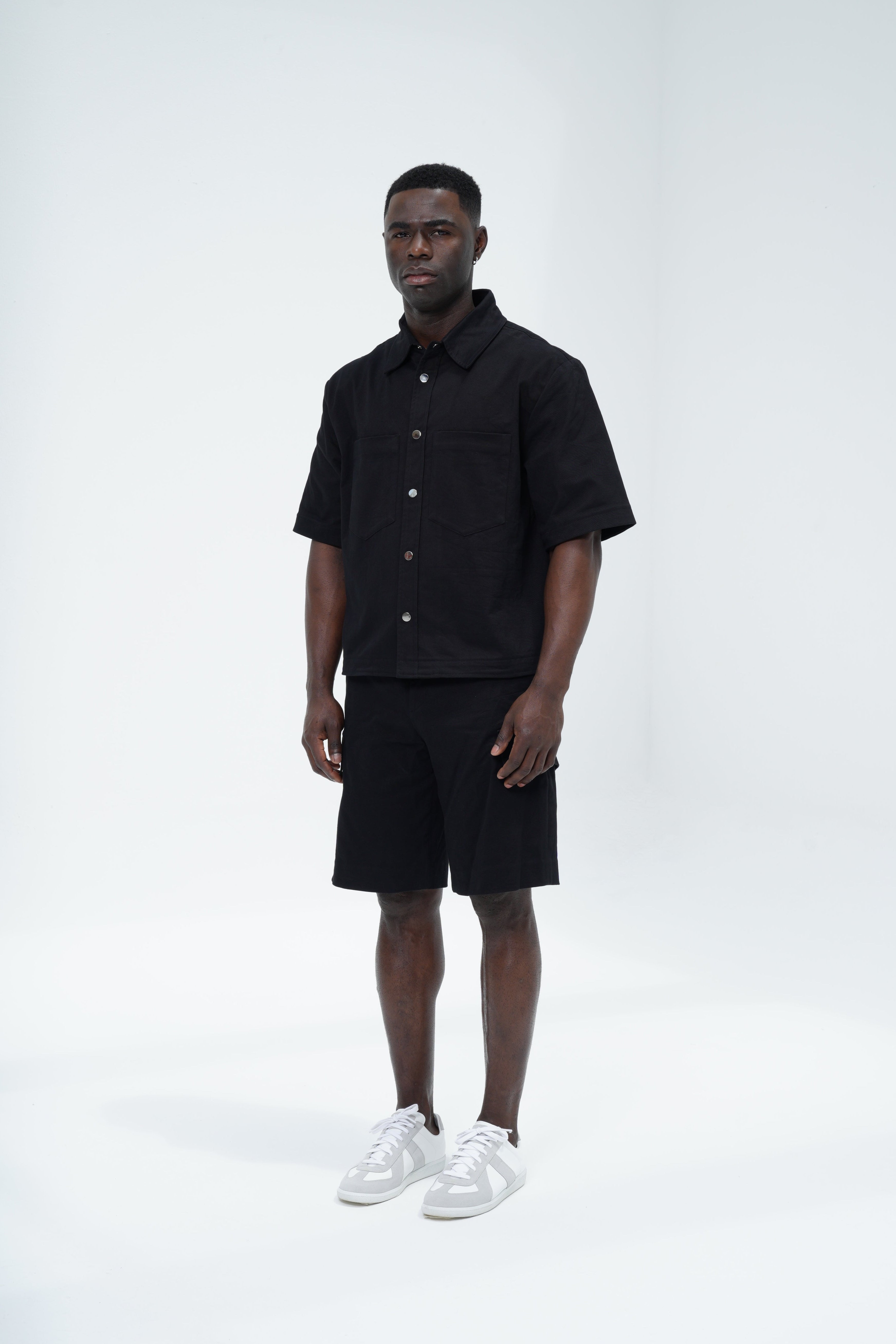 Our CORE Series, captures the essence of casual versatility. This definitive collection features essential black and white t-shirts paired with a dynamic black denim set, comprising both an overshirt and shorts.