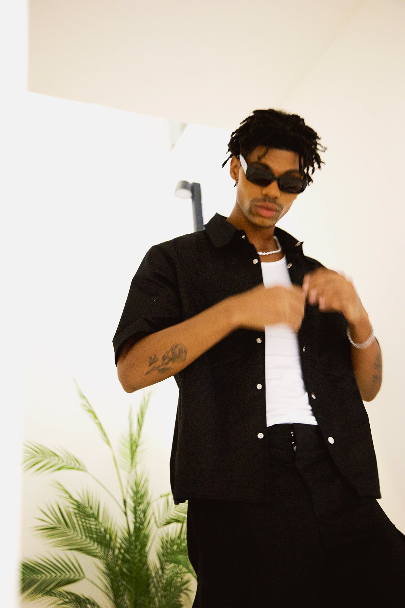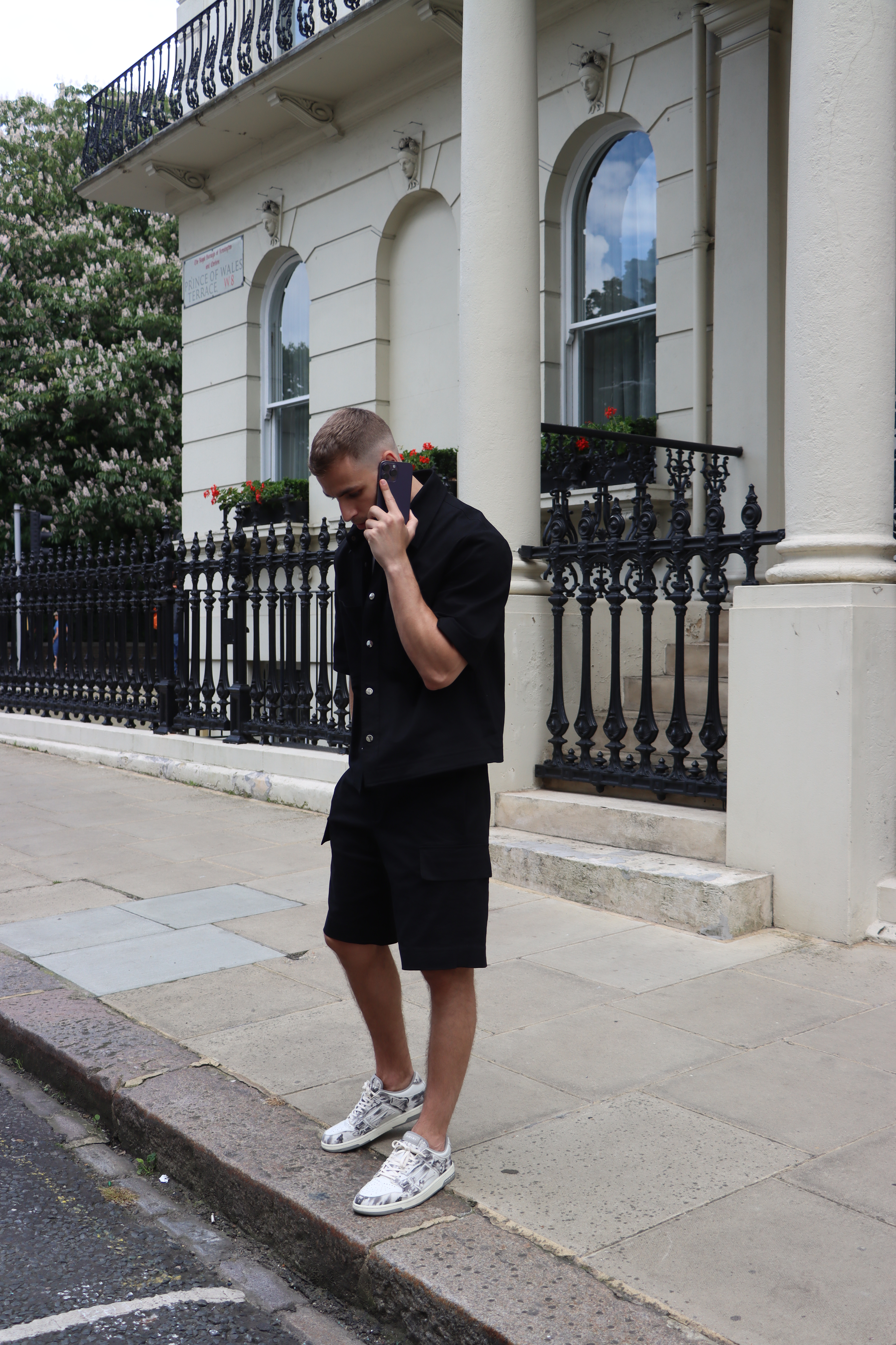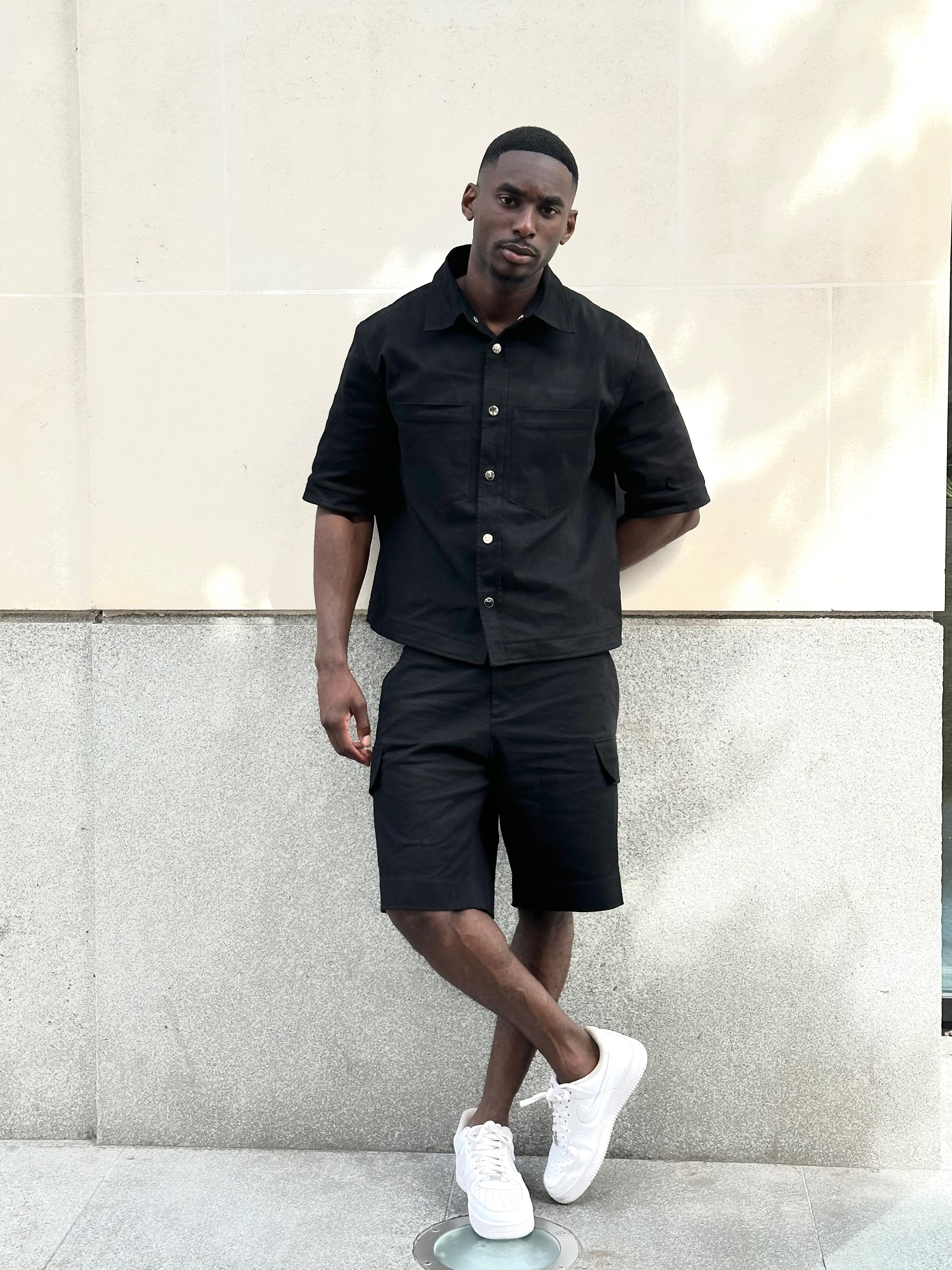 Our CORE Series, captures the essence of casual versatility. This definitive collection features essential black and white t-shirts paired with a dynamic black denim set, comprising both an overshirt and shorts.